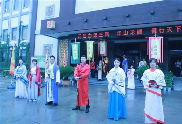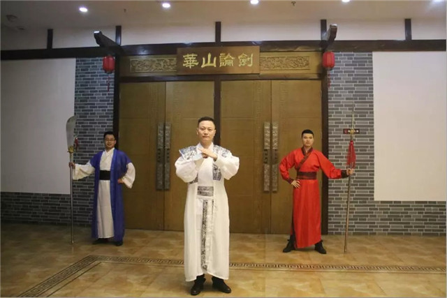 待走近华山客栈,门口众侠士抱拳示意,并热情的送上欢迎词。