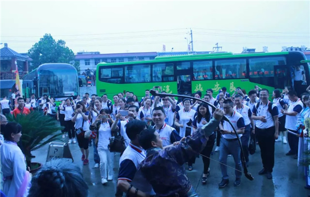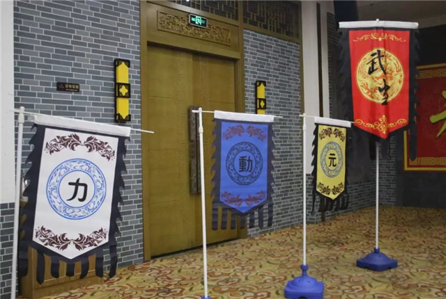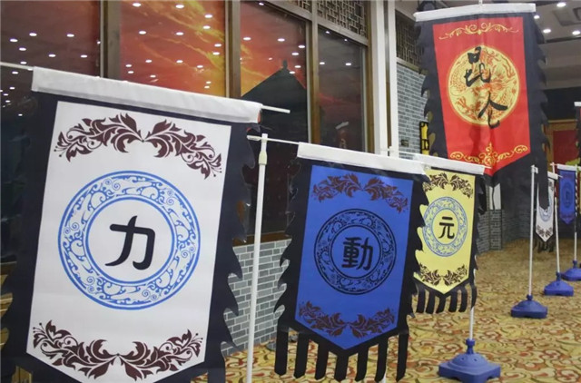 “兵马未停”,只听车内欢呼一片。转眼窗外,客栈门前元动力字样的锦旆随风飘扬,一众大侠伫立门前,列队相迎。侠客风情的客栈,古朴的装饰一下子就点燃了大家的热情。